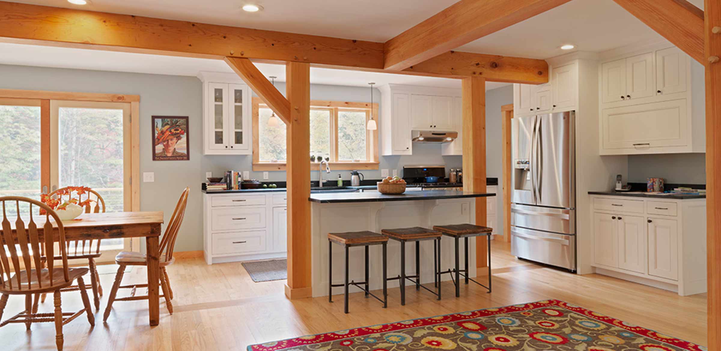 We used timber framing techniques to extend and add-on to the existing home, significantly increasing the square footage of the house. This provided both structural and aesthetic benefits to the project.